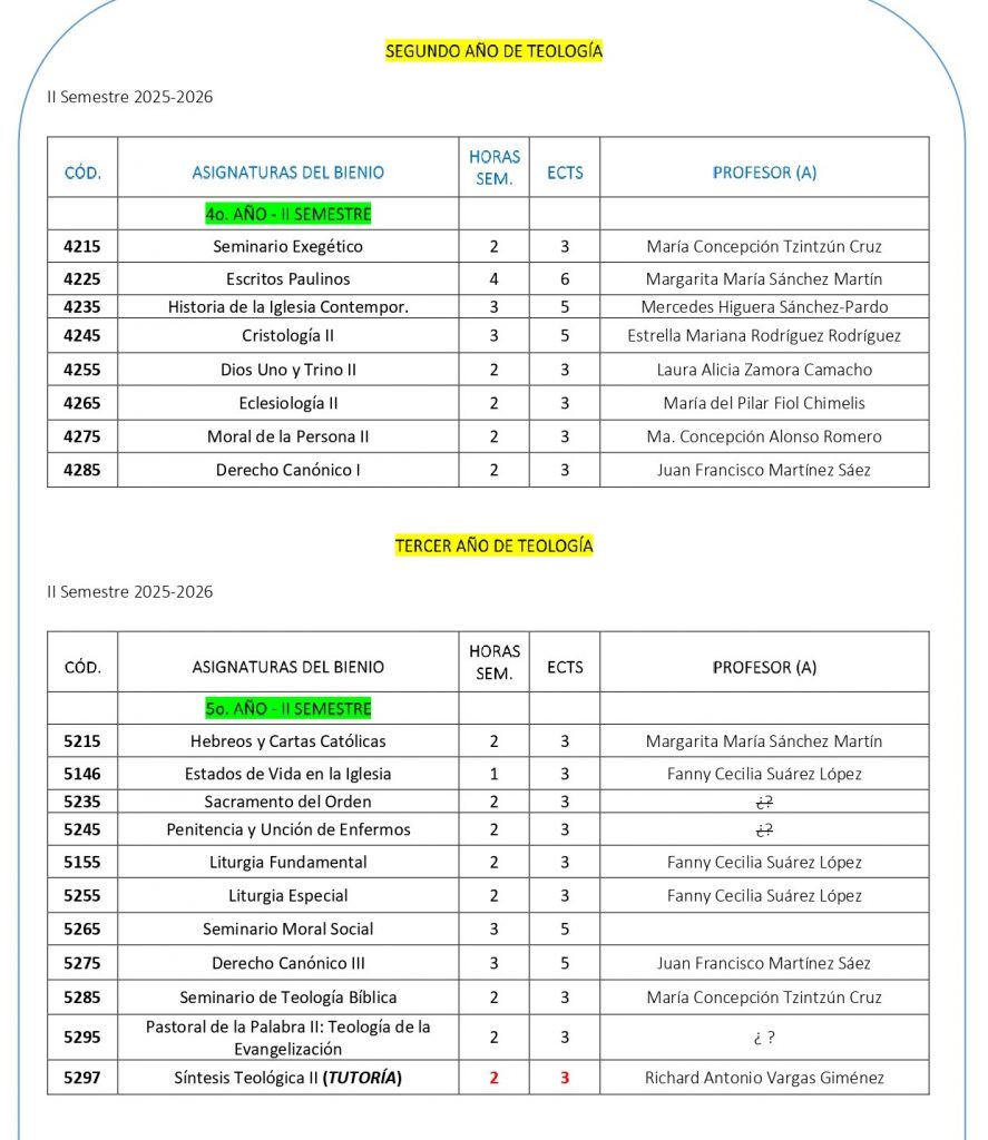 Inscripciones II Semestre 2025-2026: jueves, 15 de enero 2026