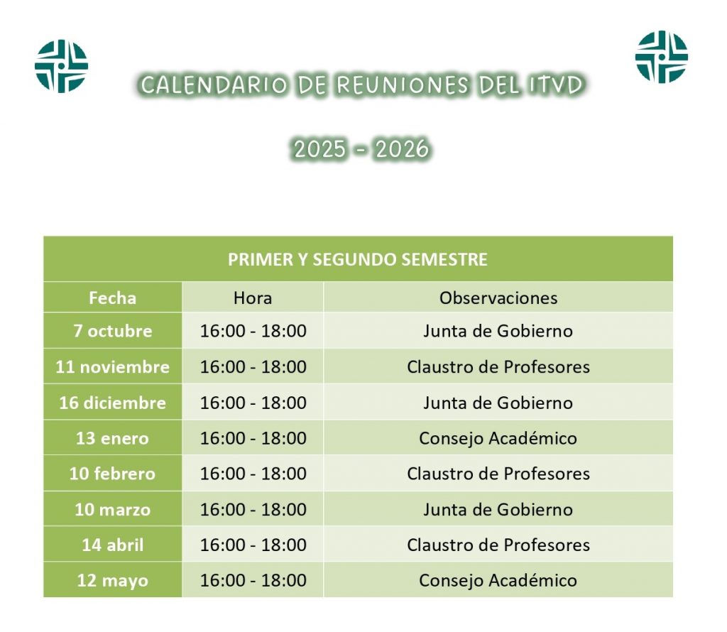 BT – I Sem Curso 2025-26 Descarga calendario I Semestre en pdf Descarga el Horario I Semestre en pdf Descarga el Calendario de Reuniones del ITVD en pdf